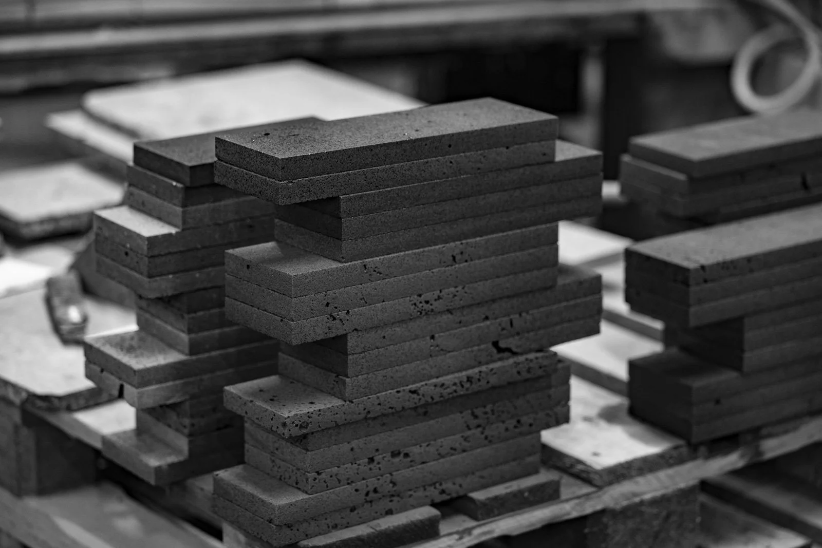 Steinar verða endurnotaðir úr grunninum á Frakkastíg til þess að útbúa klæðningu hússins.
